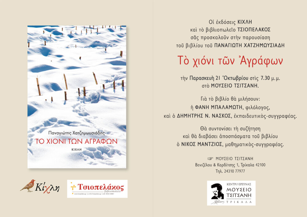 “Το χιόνι των Αγράφων” – Παρουσίαση βιβλίου του Παναγιώτη Χατζημωυσιάδη