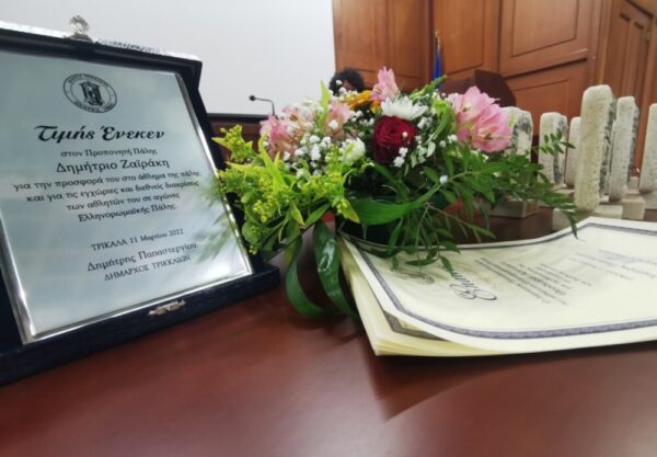 Τις βραβεύσεις έκαναν, ο Δήμαρχος Τρικκαίων Δημήτρης Παπαστεργίου, ο πρόεδρος του