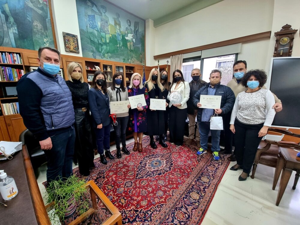 Πνεύμα εορταστικό και χριστουγεννιάτικο στο Δημαρχείο Τρικκαίων, παρά την είσοδο του 2022. Αιτία, η βράβευση από τον Δήμο, των συμπολιτών/ισσών που μετείχαν στον διπλό διαγωνισμό: για καλύτερο στολισμό οικίας και καλύτερο στολισμό εμπορικού καταστήματος.