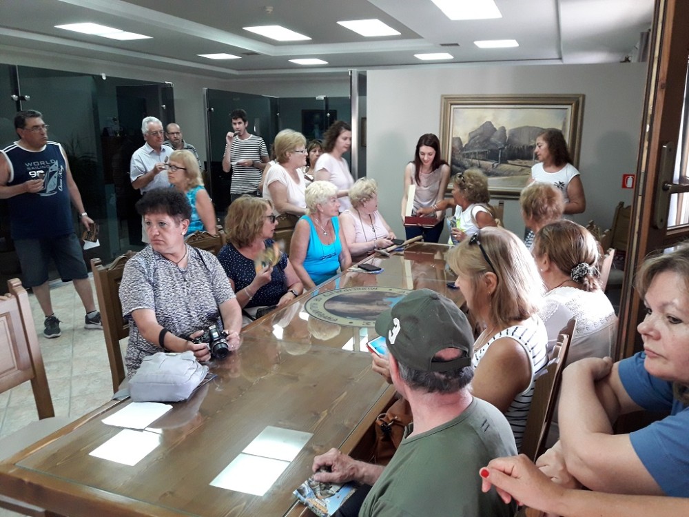 Τριάντα δύο μέλη του συλλόγου, καθηγητές πανεπιστημίου, γιατροί, δικηγόροι κ.α. από την Αργεντινή, τη Χιλή και την Ουρουγουάη πέρασαν σήμερα από το Δημαρχείο Καλαμπάκας, όπου τους υποδέχθηκε ο Αντιδήμαρχος Τουρισμού κος Κωνσταντίνος Ράντος. Τα μέλη του συλλόγου ξεναγήθηκαν στο Κέντρο Τουριστικής Πληροφόρησης του Δήμου μας, από όπου έλαβαν χρήσιμες πληροφορίες για τα αξιοθέατα της περιοχής μας.