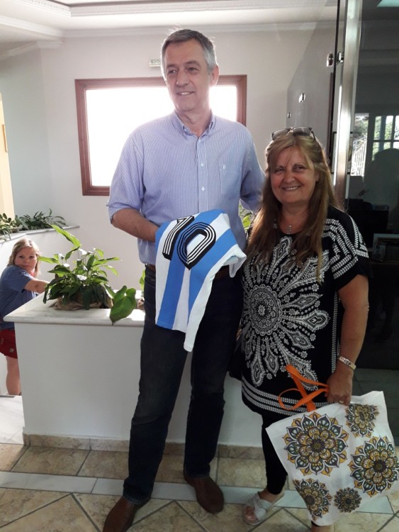 Η πρόεδρος του συλλόγου κα Χριστίνα Τσαρδίκου, δήλωσε ενθουσιασμένη με την περιοχή μας και τα Μετέωρα. Πληροφορούμενη ότι υπάρχουν αρκετά νέα Μουσεία στην πόλη μας που αξίζει και πρέπει να επισκεφτούν, διαπίστωσε ότι δεν αρκεί μόνο μία διανυκτέρευση στην περιοχή μας και αυτό θα το λάβουν υπόψη στο επόμενο ταξίδι τους. Αφού ευχαρίστησε για τη φιλοξενία, προσέφερε στον Αντιδήμαρχο ένα βιβλίο του συλλόγου και μία φανέλα της Αργεντινής.