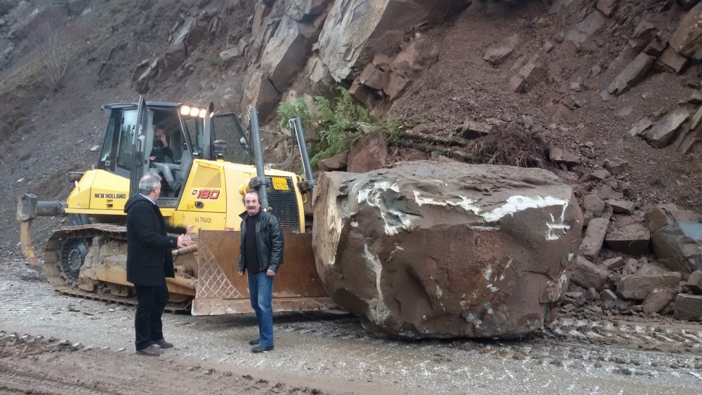 Ο κ. Μιχαλάκης την Δευτέρα 11-01-2016 επισκέφθηκε τους οδικούς άξονες, από 3 Ποτάμια προς Γέφυρα Αλεξίου όπου στο ύψος της Μηλιάς σημειώθηκε πτώση βράχου, όπως κάτι ανάλογο σημειώθηκε και στον κεντρικό άξονα από Μοσχόφυτο προς Πολυνέρι. Αμέσως κινητοποιήθηκαν μηχανήματα της Περιφερειακής Ενότητας Τρικάλων τα οποία με τις οδηγίες του κ. Αντιπεριφερειάρχη καθάρισαν τους δρόμους από τους αποκολλημένους βράχους και η κυκλοφορία των οχημάτων αποκαταστάθηκε χωρίς ιδιαίτερα προβλήματα.